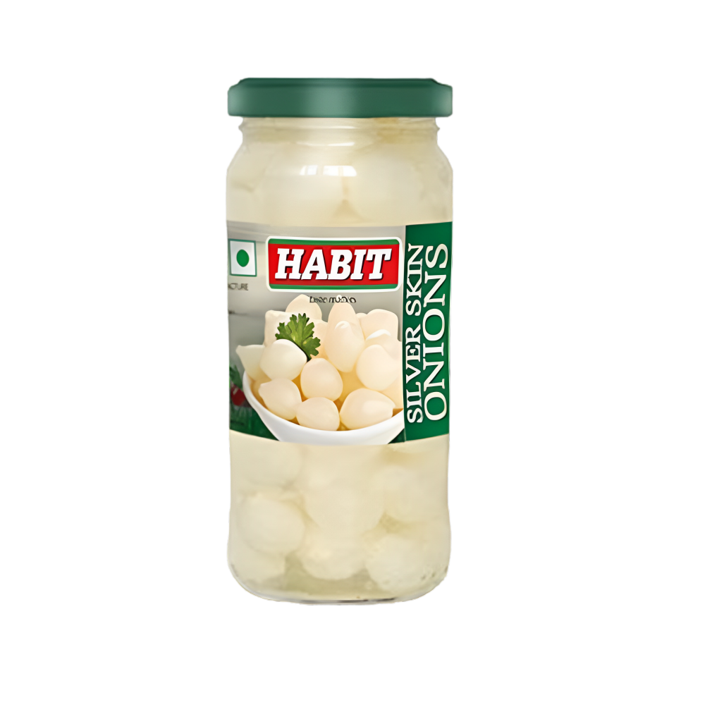 Habit Silver Skin Onions are small, crisp onions pickled to perfection, offering a tangy and slightly sweet flavor profile. These onions are carefully selected for their quality and preserved in a brine solution, ensuring they retain their crunchy texture and delightful taste. Perfect for adding a zesty kick to salads, sandwiches, charcuterie boards, and appetizers, they are a versatile addition to any kitchen.