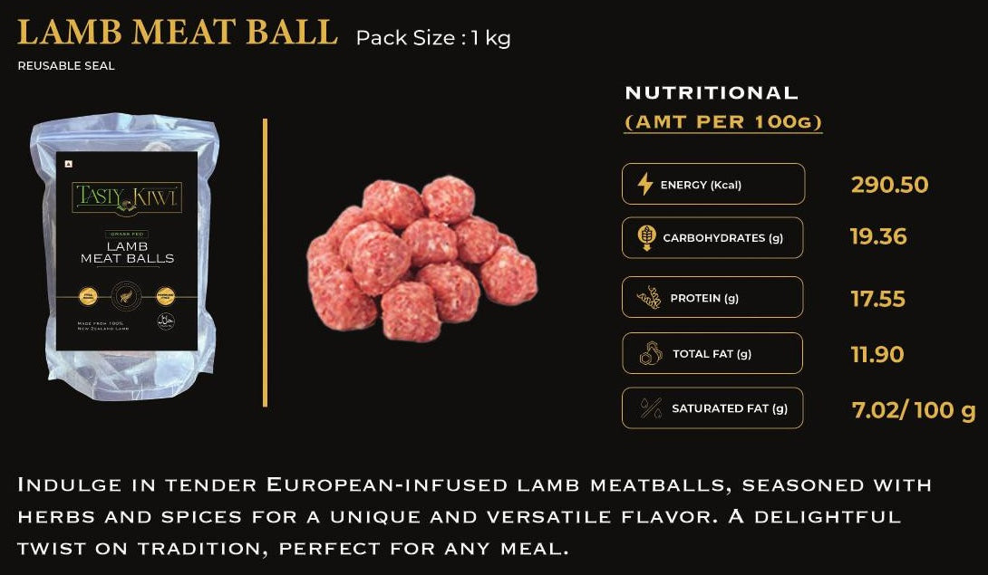 Pure South Lamb Meatballs are crafted from high-quality New Zealand lamb, known for its lean, tender, and flavorful meat. The naturally raised lamb produces meat with an exceptional taste and texture, ideal for various cuisines and cooking styles.