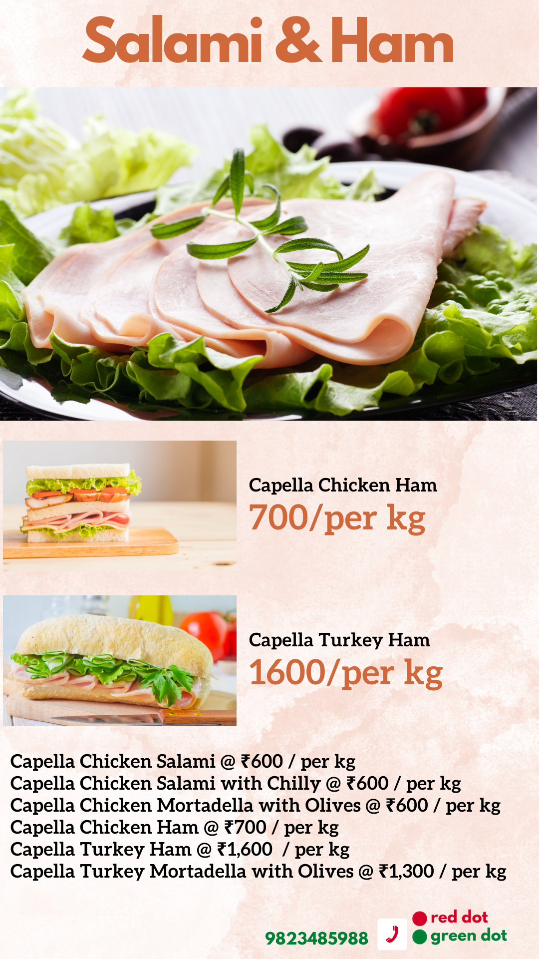 Capella Farms Pune's Chicken & Turkey Ham is a premium-quality product crafted by Capella Farms, based in Pune, India. Here are some details and features of this product: