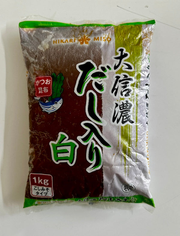Hikari Daishinano Dashi Iri Brown Miso Paste comes in a generous 1kg package, providing you with ample miso for various culinary creations. Made from carefully selected ingredients, including soybeans, rice, and salt, this miso paste undergoes a traditional fermentation process, resulting in its distinctive taste and aroma.